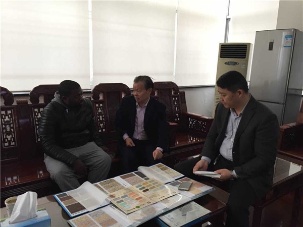 20151212日。广交会非洲刚果客商费先生,专程来我公司,就双方在涂料领域的战略合作事宜,进行了深入商谈,参加本次商谈的有江苏PA视讯在线官网涂料有限公司董事长缪国元以及总经理薛亚波。