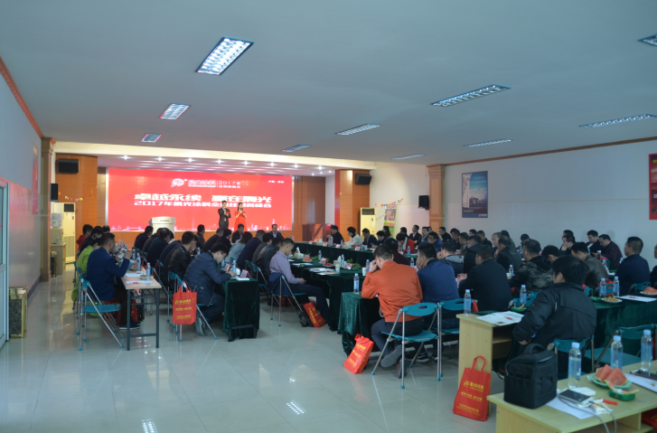 PA视讯在线官网薛亚波总经理在11日上午的会议上,着重对以水性瓷砖粘结剂、水性环保涂鸦漆、水性环保防水涂料、智能变色隔热节能涂料、绝热保温隔热涂料系统、水包砂多彩石涂料为代表的多样产品进行业务知识的培训再提升,以提升精英们的业务知识,为2017年撸起袖子加油干备足技能。