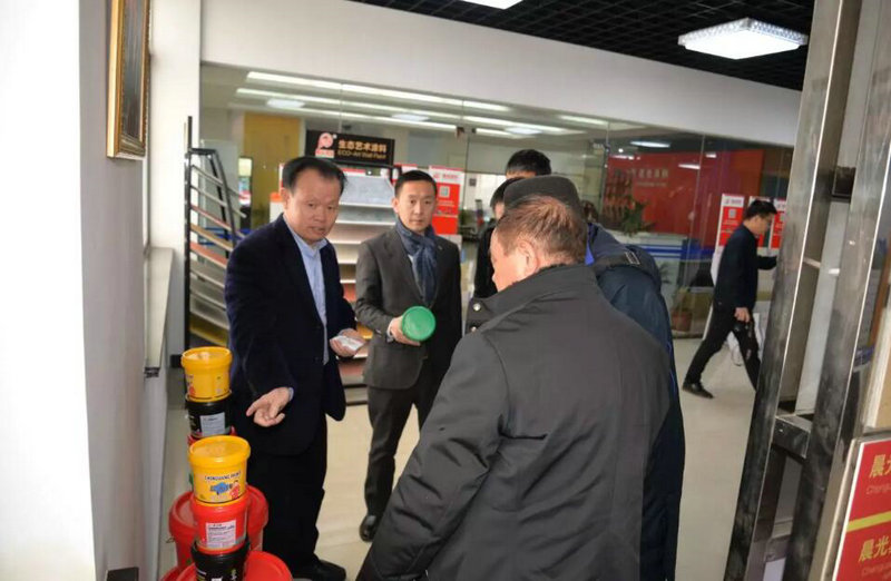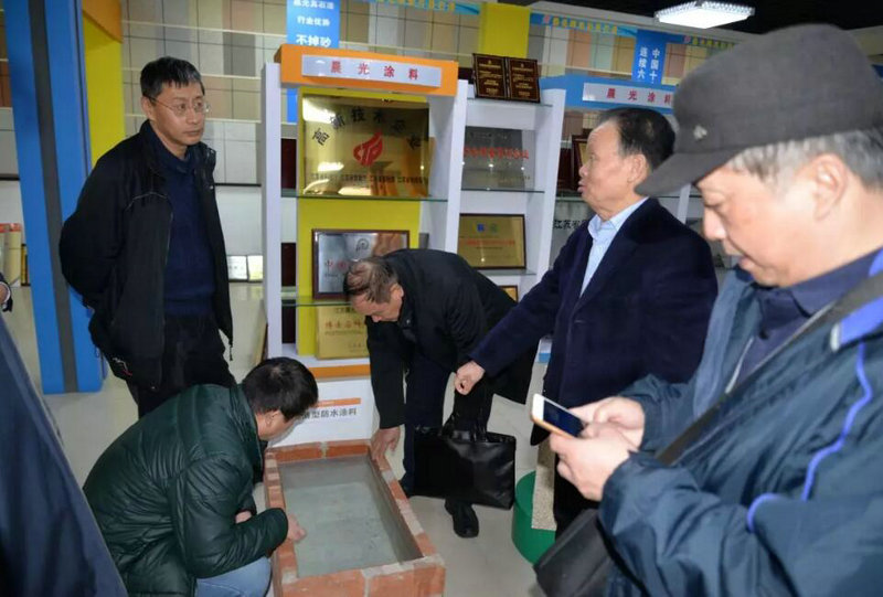 PA视讯在线官网缪国元董事长带领考察团进行实地参观,在展示厅,考察团对于变色调光膜、净味瓷砖粘结剂、耐擦写涂鸦漆、绝热保温涂料、超薄防水涂料等都非常感兴趣,全面了解相关产品的亮点,通过实地了解,对于PA视讯在线官网发展、革新、进步的实力进行了全面了解,也为后续携手精品项目合作打下互信基础。
