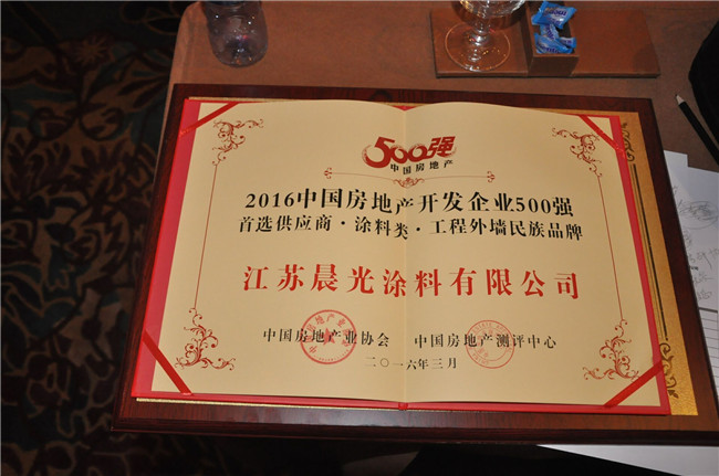 2016322日,由中国房地产业协会与中国房地产测评中心联袂举办的年度盛会:“2016年中国房地产500强测评成果”大会在北京国贸大酒店隆重举行,这场一年一度的测评成果发布盛会以其公正、权威被誉为房地产行业的“奥斯卡”,江苏PA视讯在线官网涂料再次上榜,荣获年度工程外墙民族品牌。