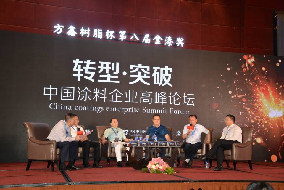 在主题为:“建筑涂料:撸起袖子怎么干”高峰论坛中,PA视讯在线官网缪国元董事长与中国建筑装饰协会涂料与防水材料分会秘书长罗胜先生、富思特新材料科技发展股份有限公司郭祥恩董事长、厦门固克涂料集团有限公司执行总经理林汶辉先生、江苏久诺建材科技股份有限公司副总经理刘长春先生就业内“转型突破”各抒己见,缪国元董事长再一次将科技创新理念通过言简意赅的话加以阐述,为涂料企业新发展动向指路。